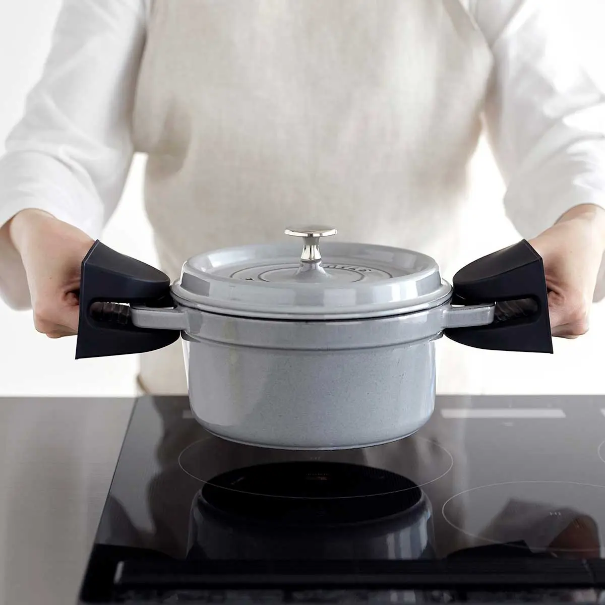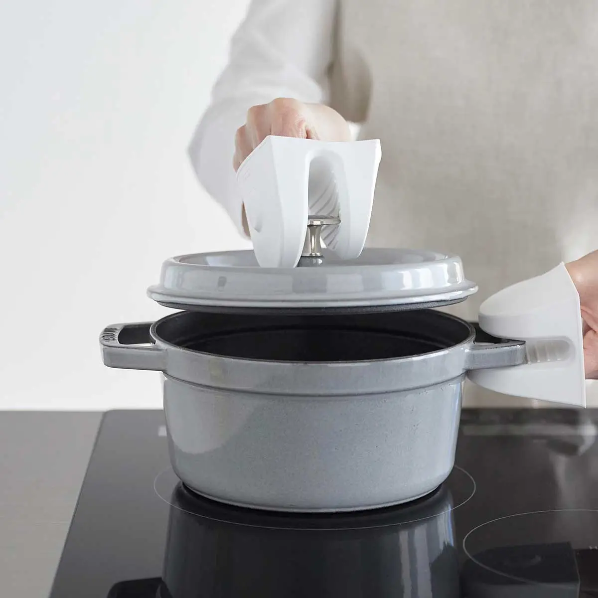 間口が広いので簡単に装着でき、しっかりと掴みやすいシリコーン製の鍋つかみ。