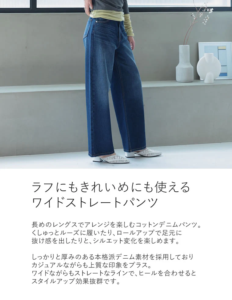 [2025AW COLLECTION][低身長/高身長サイズ有]コットンワイドストレートデニムパンツ